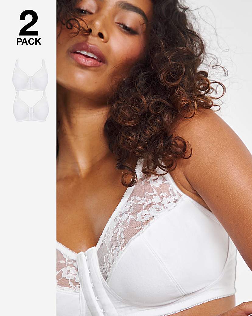 2 Pack Lace Front Fasten NW FC Bras White/White - Pretty Secrets - Size: 38DD