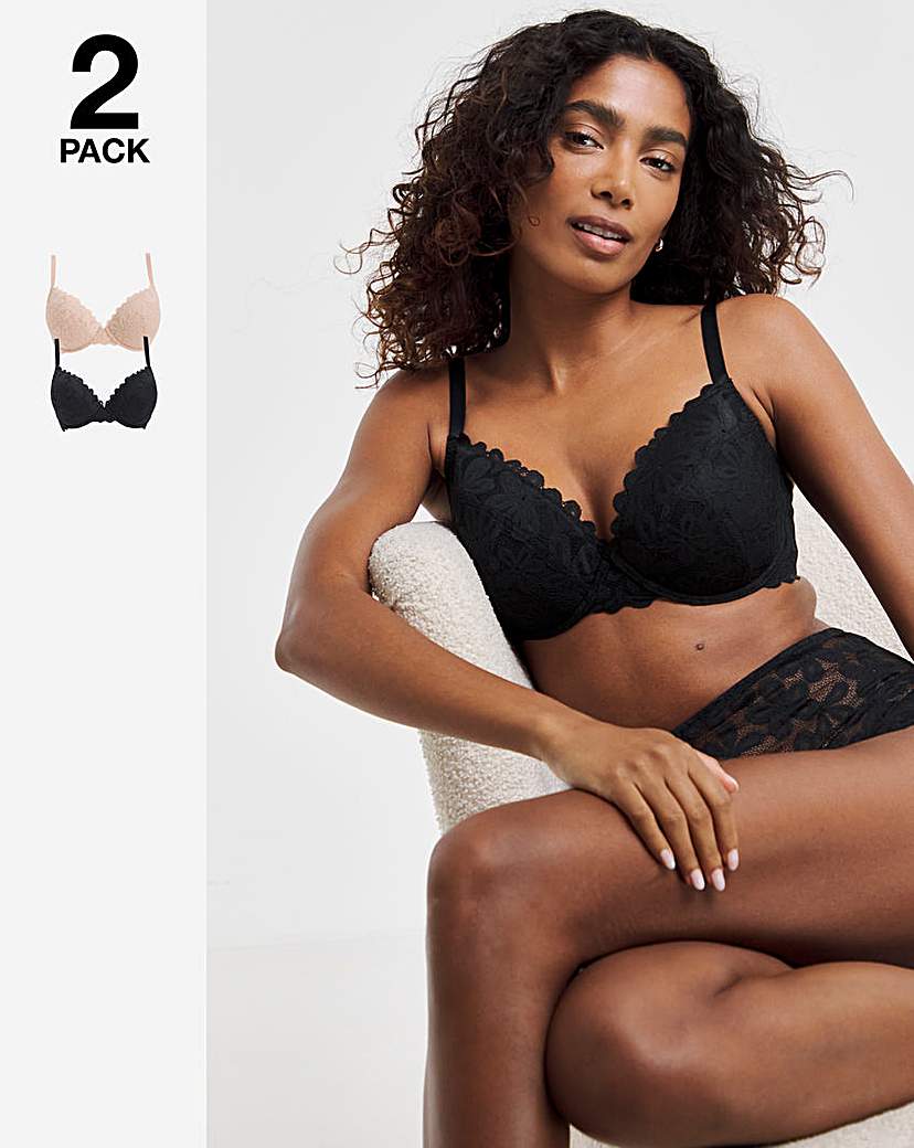 2 Pack Daisy Lace Full Cup Bras Black/Almond - Pretty Secrets - Size: 38DD