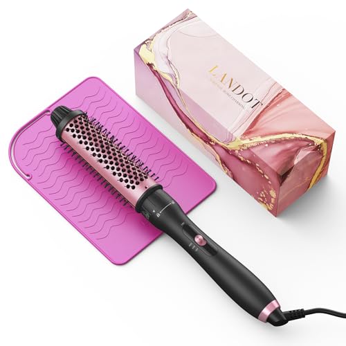 LANDOT Thermal Brush Heated Round Brush: 38 mm Curling Brush for Blowout Volumizing Look - Dual Voltage Ceramic Wand Curling Iron Brush with Detachable Head for Travel