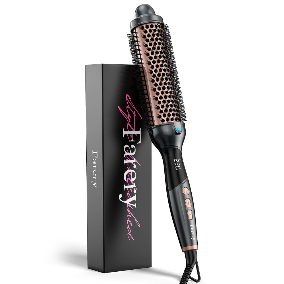 Farery Thermal Brush Extra Long Barrel, 38mm Hot Brush Curling Wand for Big Bouncy Curls, Non-Blowing Heated Round Brush, Ceramic Curling Wand for