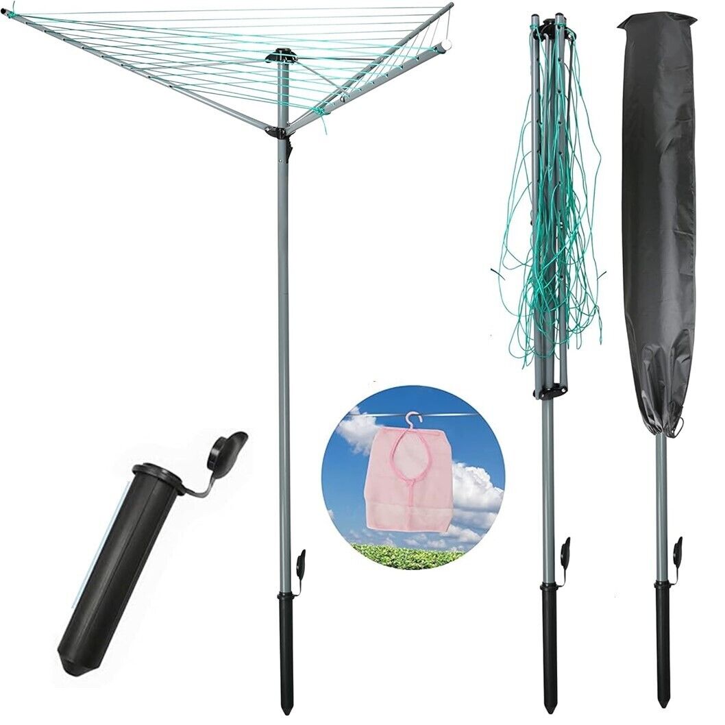 3 Arm 30m Rotary Airer Foldable Outdoor Clothes Washing Line Dryer Spike & Cover