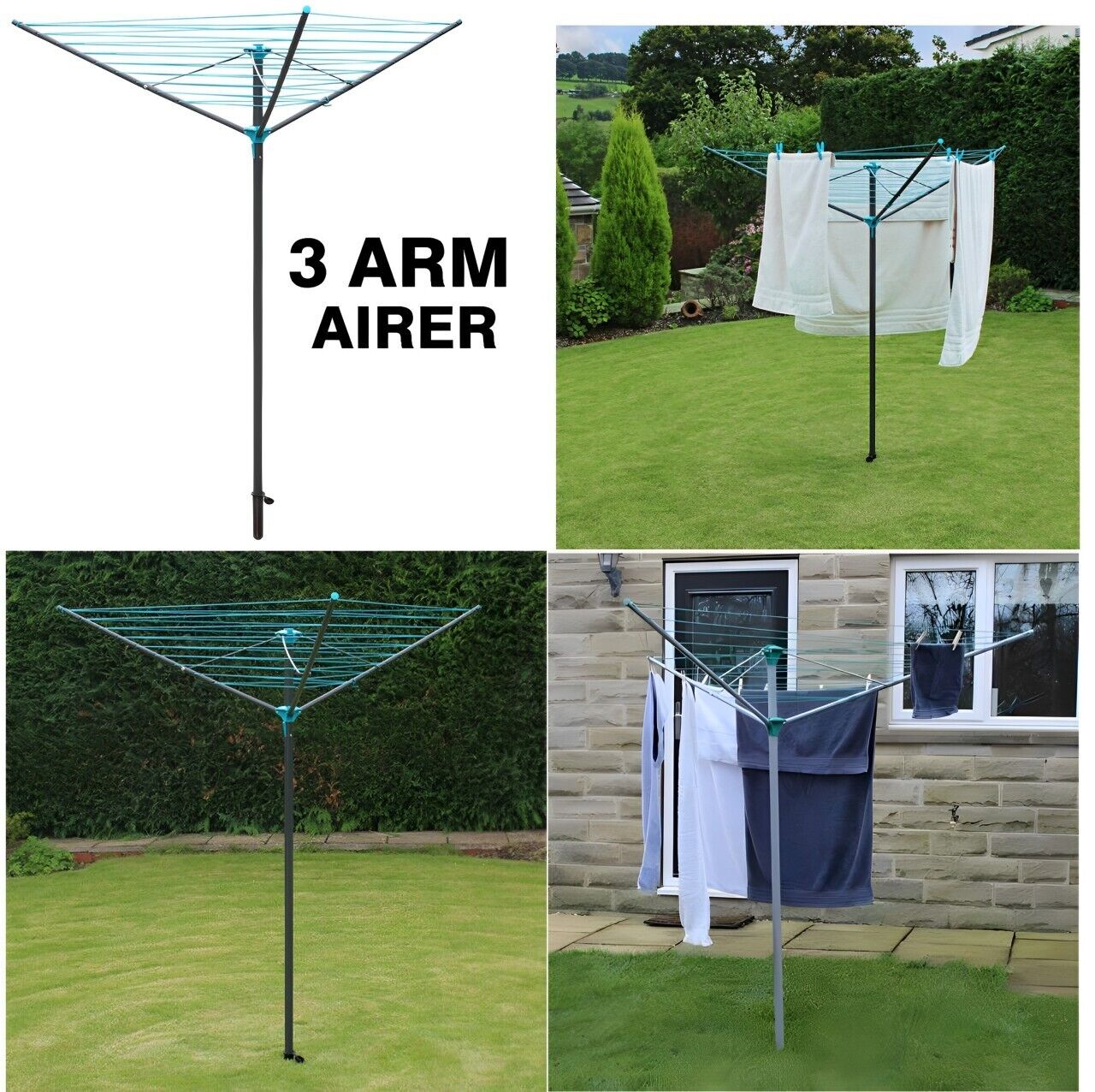 ROTARY AIRER 3 ARM CLOTHES GARDEN WASHING LINE DRYER 50M FOLDING OUTDOOR DRY