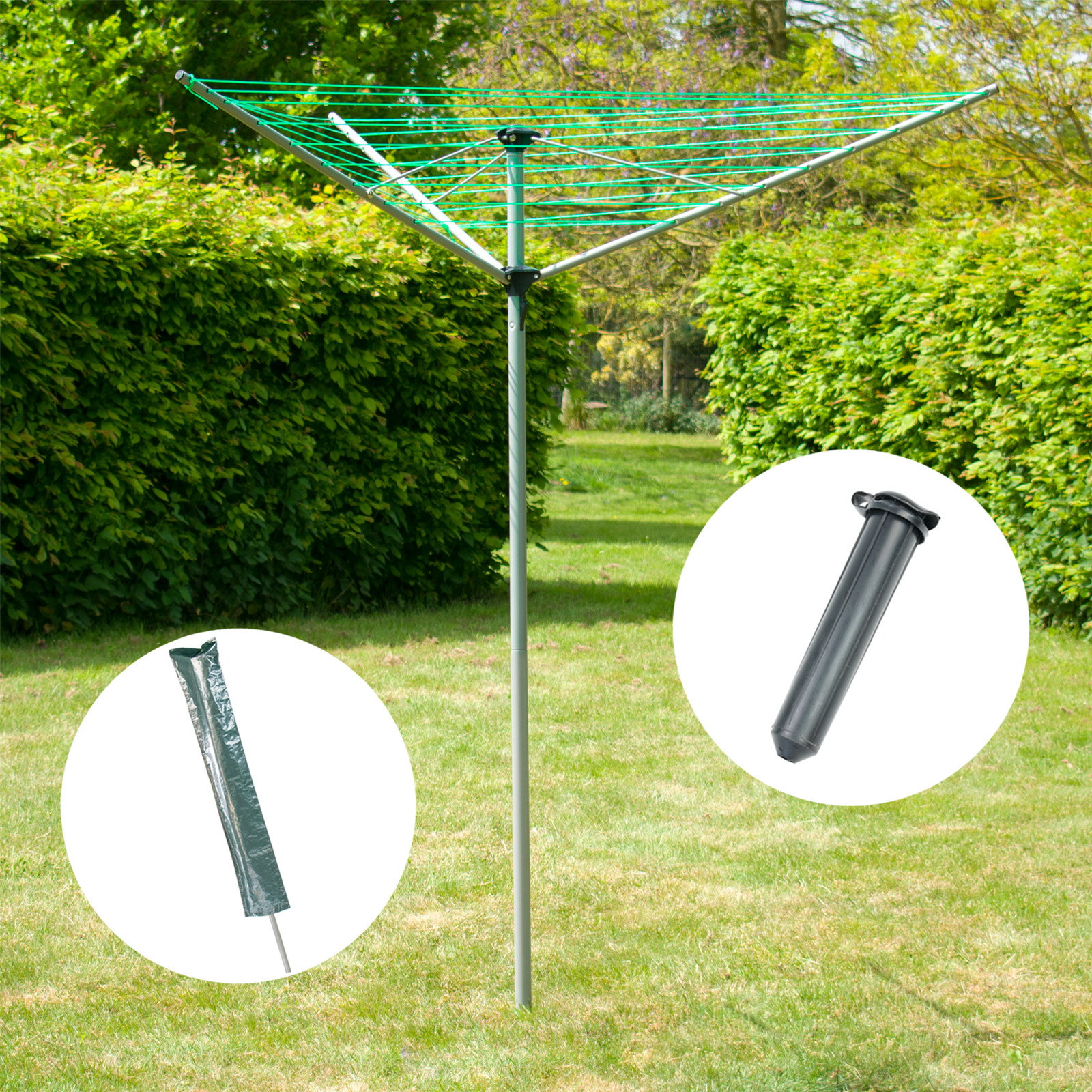 ROTARY AIRER 30M OUTDOOR 3 ARM CLOTHES WASHING LINE DRYER GROUND SPIKE & COVER