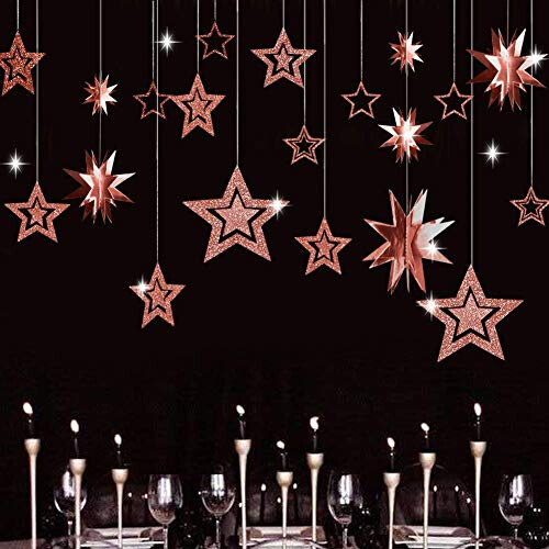 3D Rose Gold Stars Hanging Decorations Party, Home, All Events Bunting 14PCS