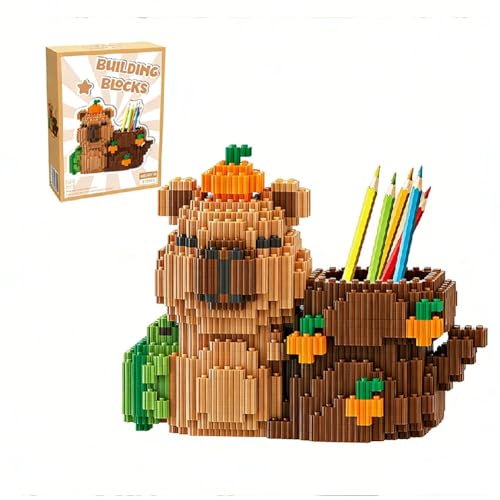 Spiritzohic Capybara Building Blocks, Capybara Pen Holder Desk Organizer Mini Building Bricks 3D Puzzle Animal Model Buildings Kits Creative DIY Buildings Blocks Desk Ornament Birthday Gifts (B)