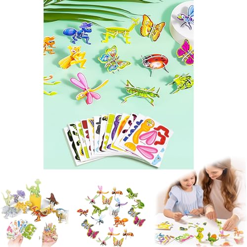 Insec-t & Animal Slot-Assembly Toys, Realistic Plas-tic Bu-g Figures Set, 3D Animal Puzzle Model Set, Educational Bu-g & Animals Building Kit, Creative Learning Toy For Science, Nature Exploration