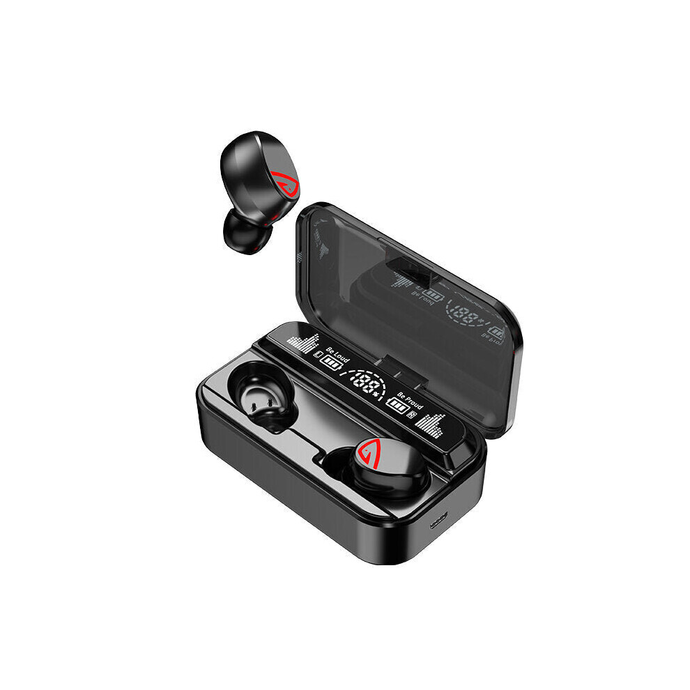(Black) TWS bluetooth 5.2 Earphone LED Power Display With 2000mAh Bank Gaming Headset In-Ear Noise Cancelling HiFi 3D Stereo Music Headphone
