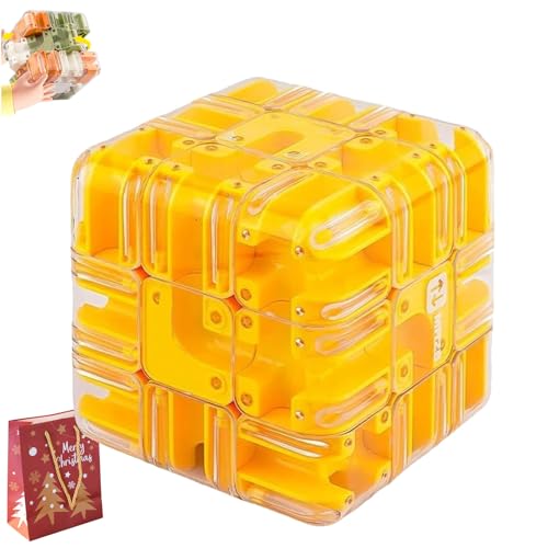 Large 3D Puzzle Maze Cube - Fascinating Brain Teaser Toy, Smart Rolling Ball 3D Puzzle Maze Ball, Difficult Challenging Educational Toy for Adults(Yellow)