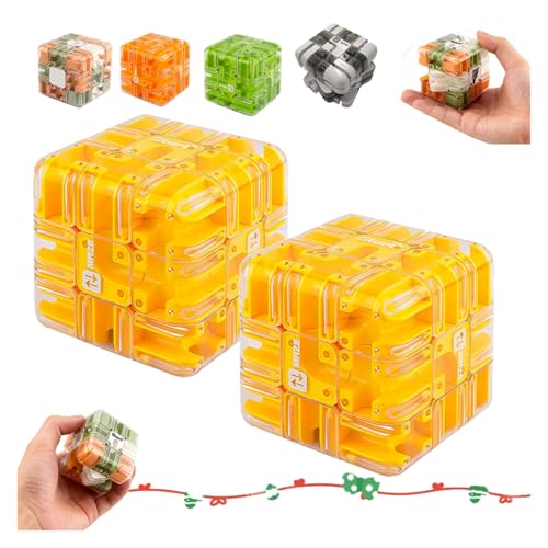 Large 3D Puzzle Maze Cube - Fascinating Brain Teaser Toy, Smart Rolling Ball 3D Puzzle Maze Ball, Difficult Challenging Educational Toy for Adults(Yellow-2pcs)