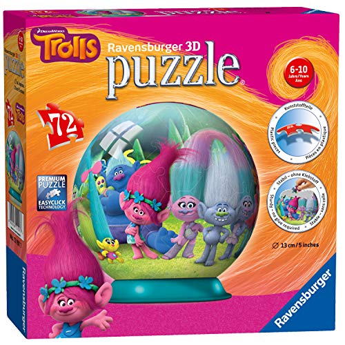 Ravensburger Trolls 3D Jigsaw Puzzle Ball for Kids Age 6 Years Up - 72 Pieces - No Glue Required