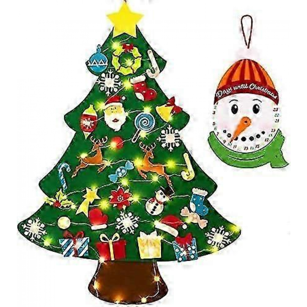 3ft DIY Felt Christmas Tree Set + Snowman Advent Calendar - Xmas Decorations Wall Hanging 33 Ornaments Kids Gifts Party Supplies