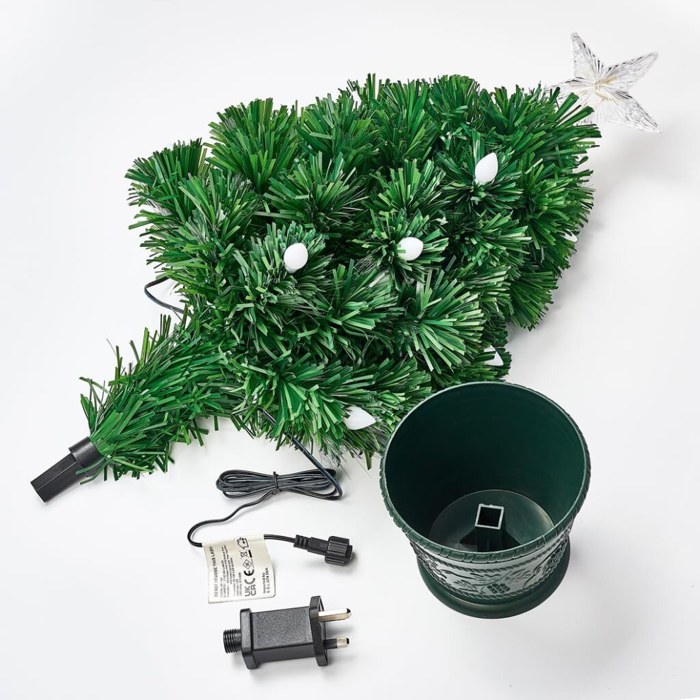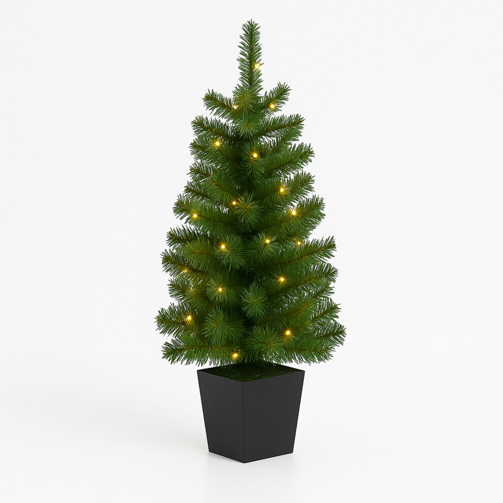 3ft Pre-Lit Christmas Tree in Pot, 60 Warm White LEDs, Indoor/Outdoor Use
