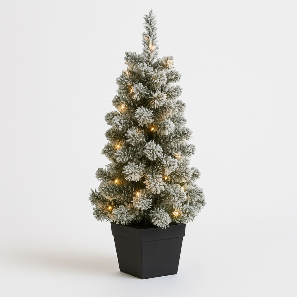 3ft Pre-Lit Snowy Christmas Tree, Indoor Mini Tree with 40 LED Lights