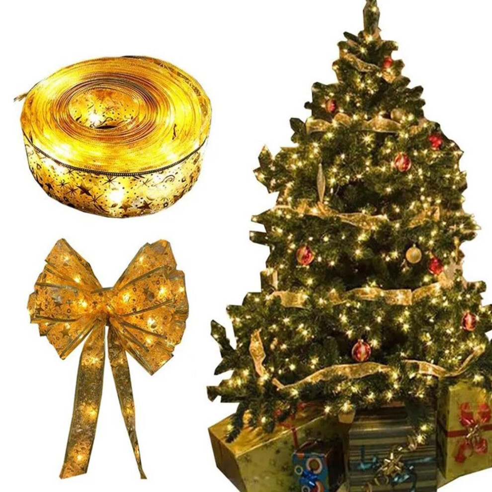 Christmas Tree Decorations String Lights LED Battery Powered Fairy Lights Gold Edge Wired Ribbon 3ft For Xmas Tree