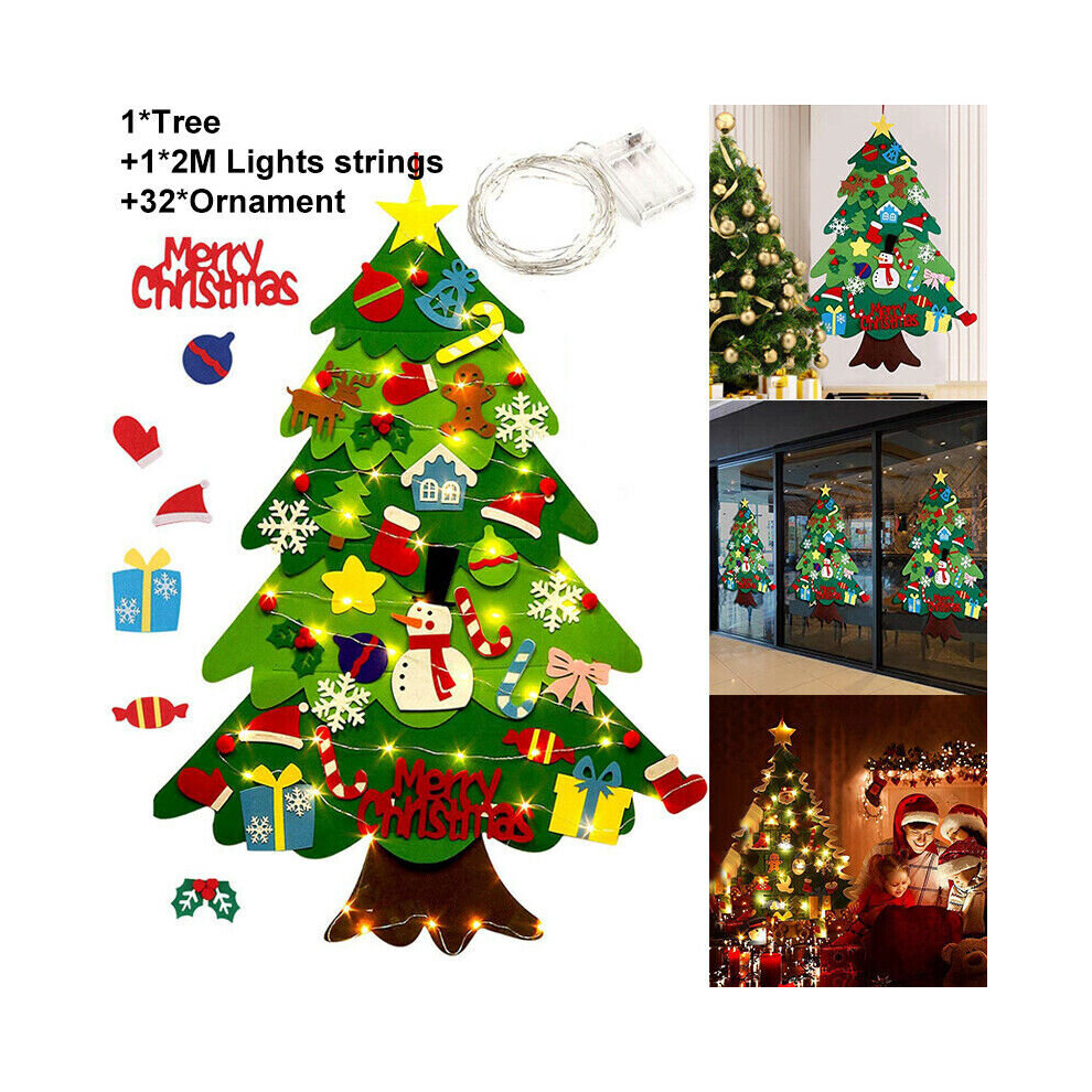 Lighted Christmas Decorations, Diy Felt Christmas Tree, About 26 Pcs Ornaments, Reusable Wall Hanging, Advent Calendar Substitute, 3ft Tall, Easy Acce