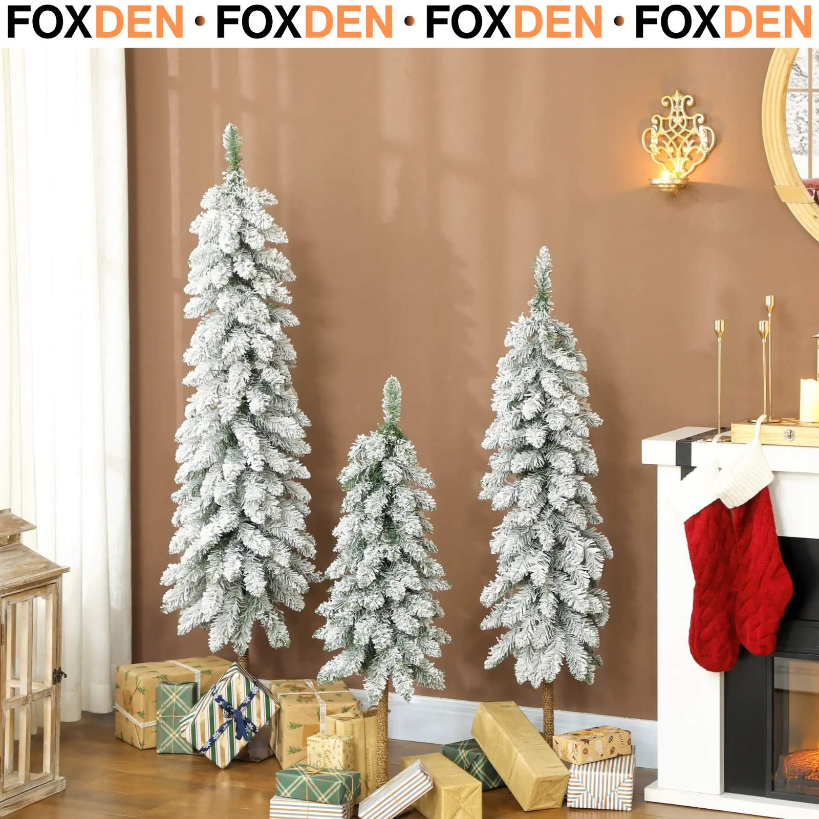 Set of 3 Pencil Flocked Christmas Tree, 3ft 4ft 5ft Downswept Xmas Tree