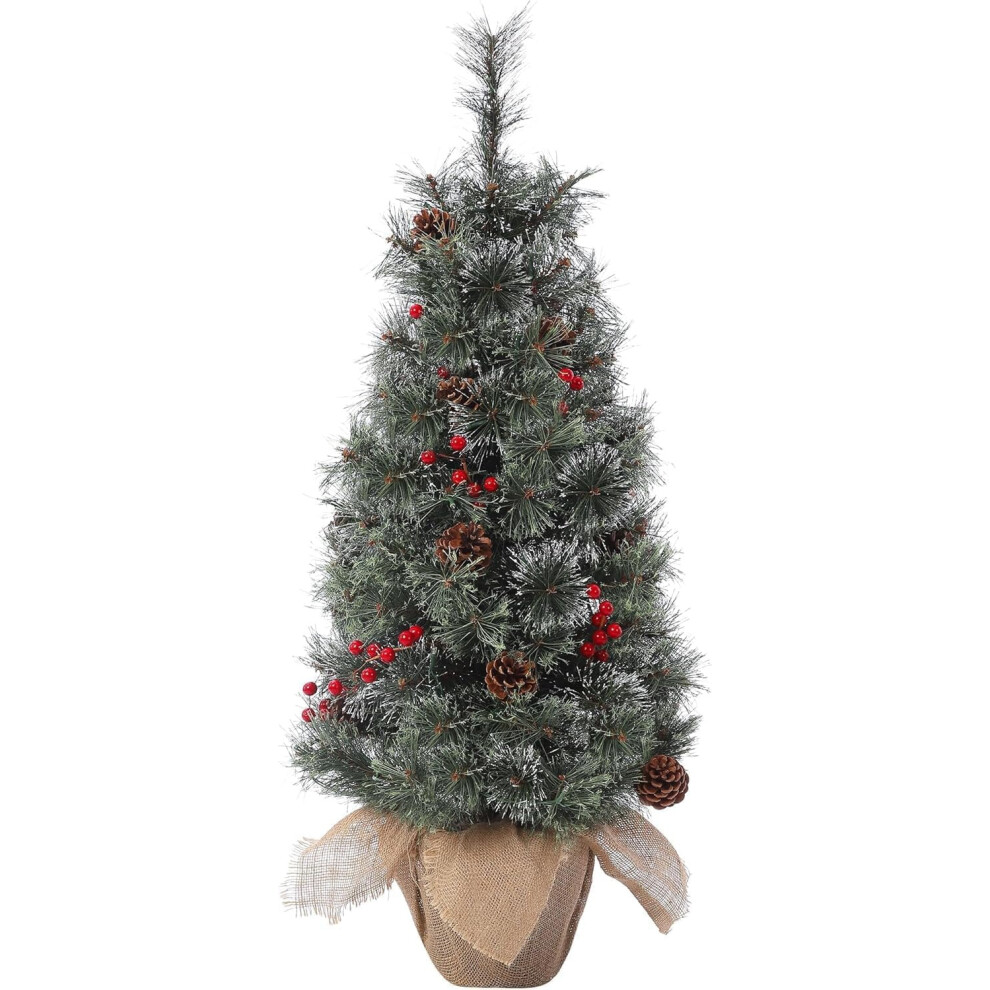 3ft Tabletop Christmas Tree with 70 Warm White LEDs, Pine Cones & Red Berries â Compatible with Home/Office Holiday Decor