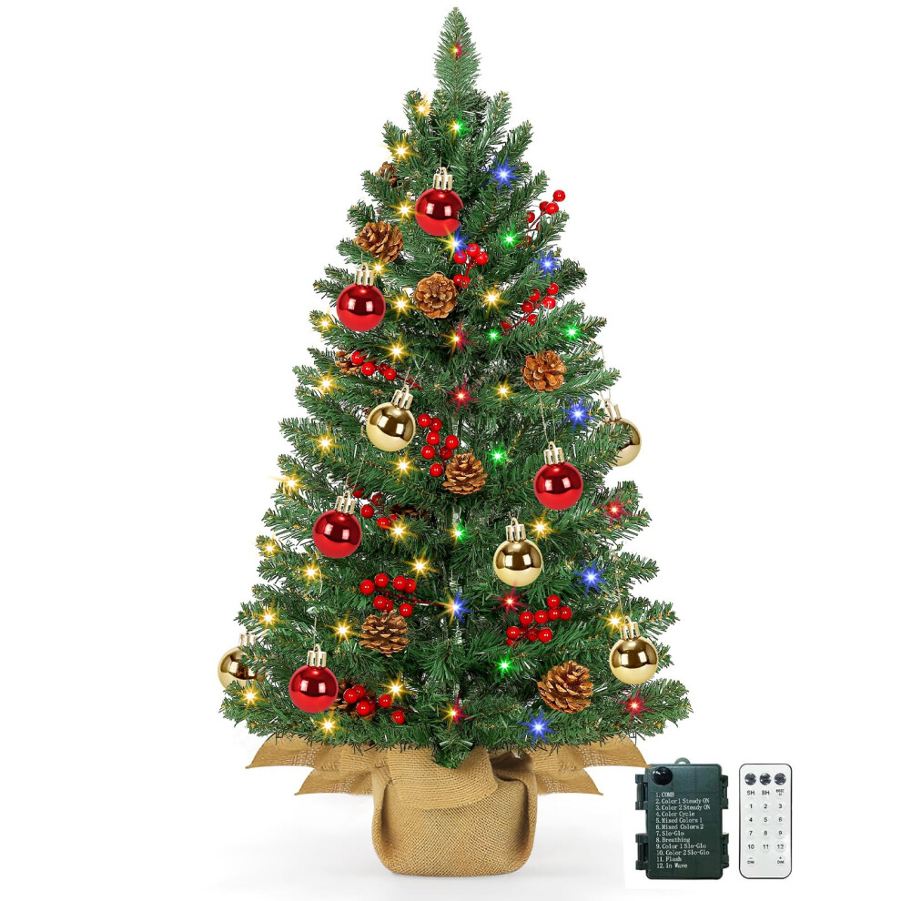 3ft Prelit Tabletop Christmas Tree with Lights, 12 Modes, Timer, Remote, Pine Cones, Burlap Base