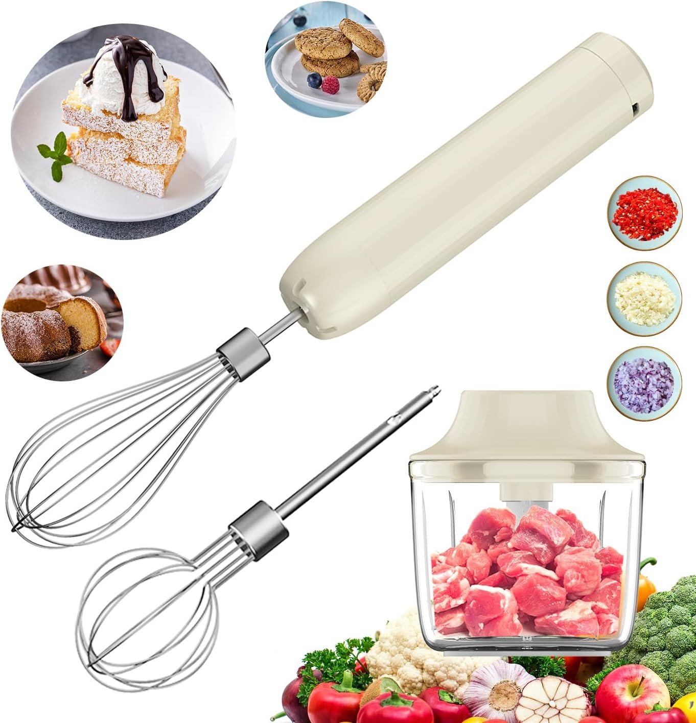 3-In-1 Electric Whisk, Hand Mixer, Small Cordless Hand Blender, Mini Onion Chopp