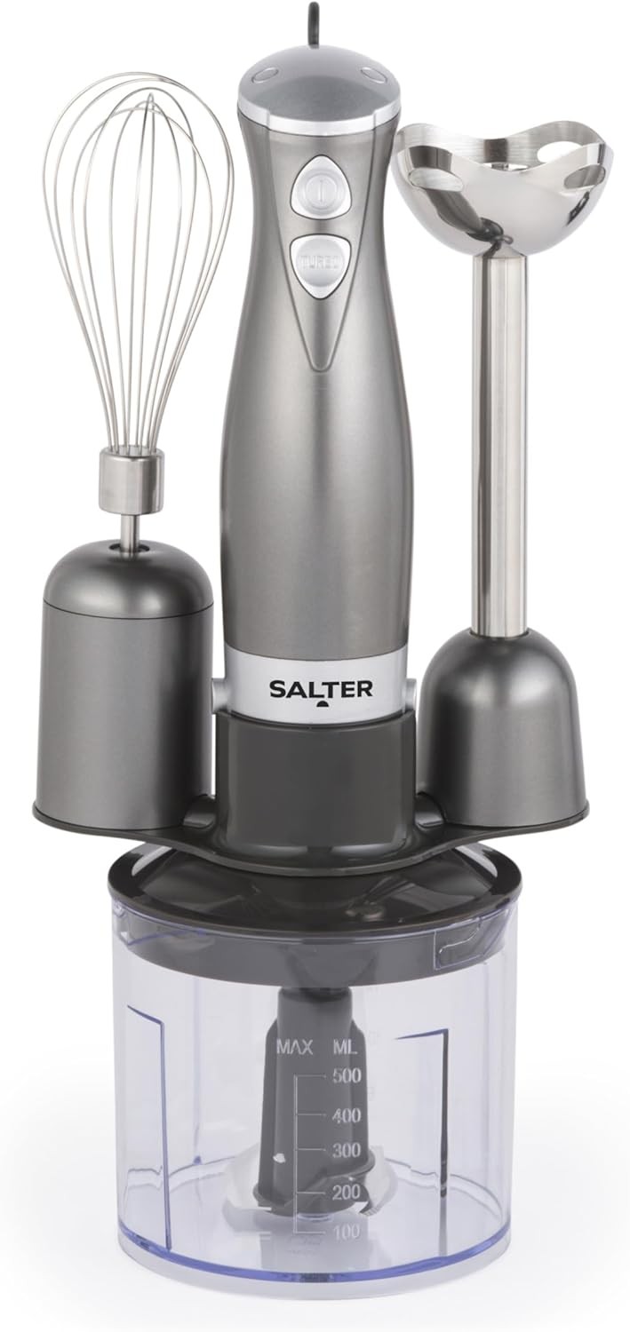 Salter Cosmos 3-in-1 Hand Blender ? Whisk, Blender & Chop, Food Processor, Vegetable Chopper, Stainless Steel Blades, 500ml Chopping Bowl, Whisk &