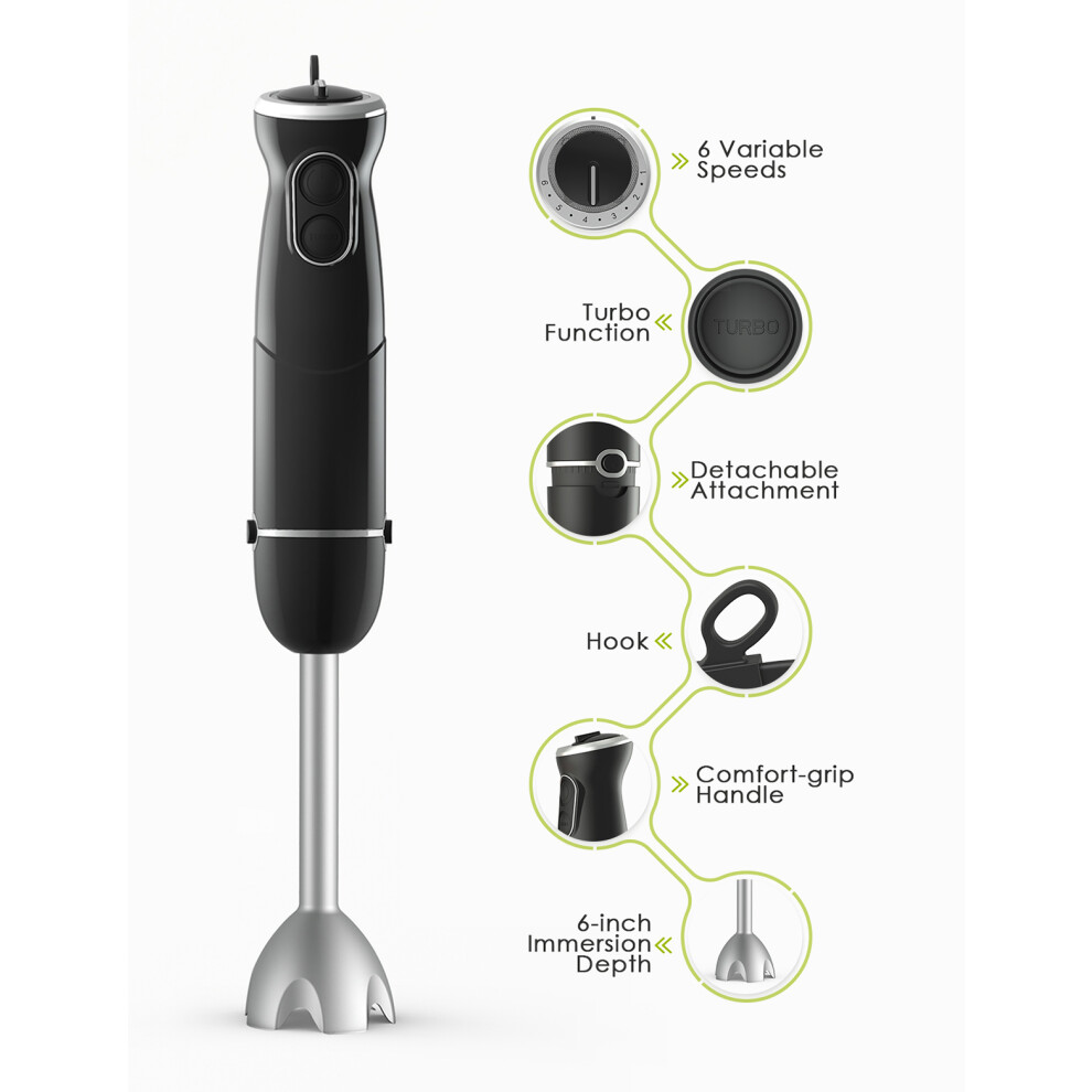 500W 3-in-1 Hand Blender with Attachments, Black, 6-Speed, Turbo