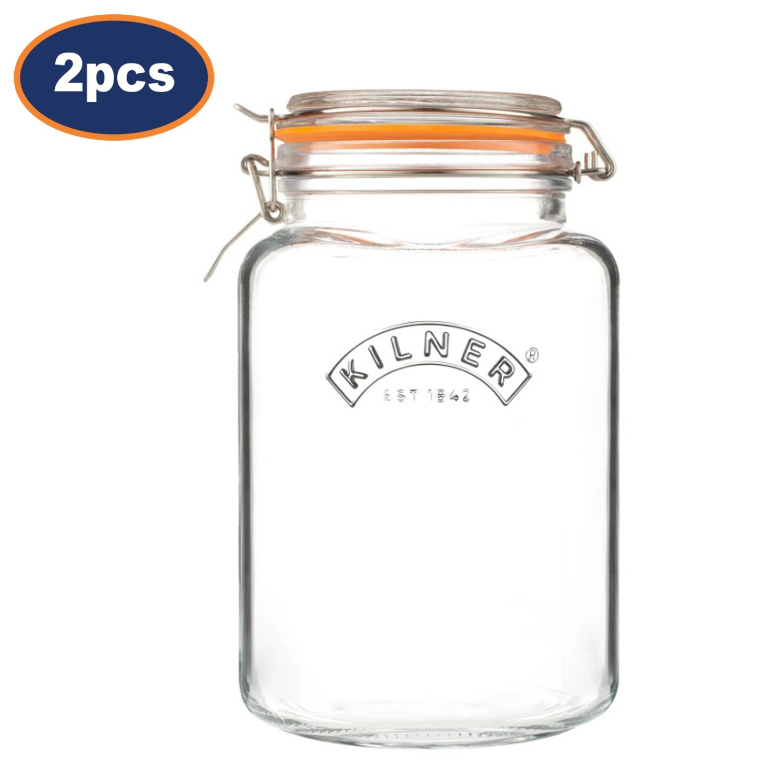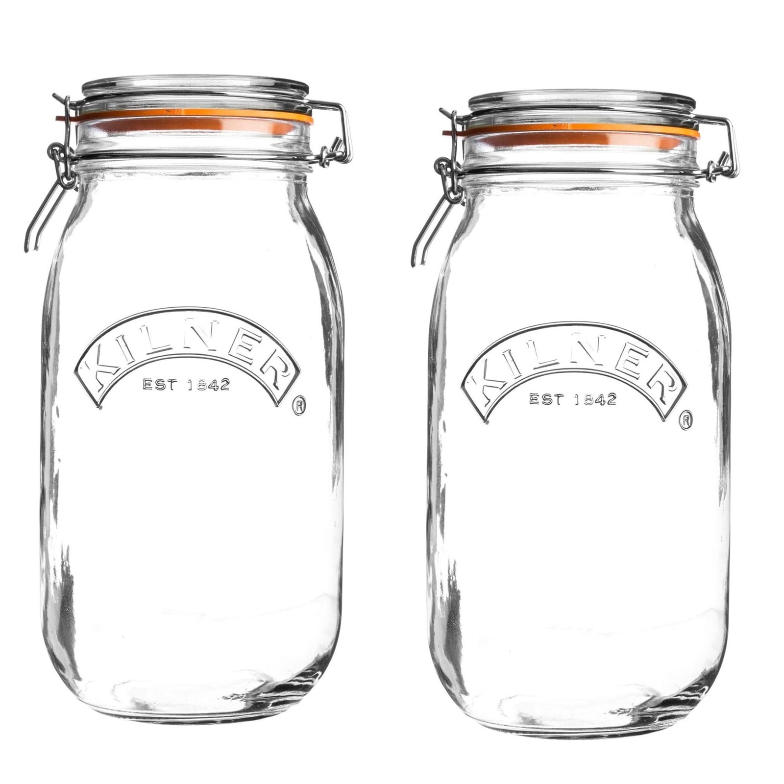 Kilner Clip Top Jar 3L (3000ml) Airtight Glass Jar for Preserving Whole Fruits Vegetables and Storing Cereals Pasta Nests Pet Biscuits (Pack of 2)