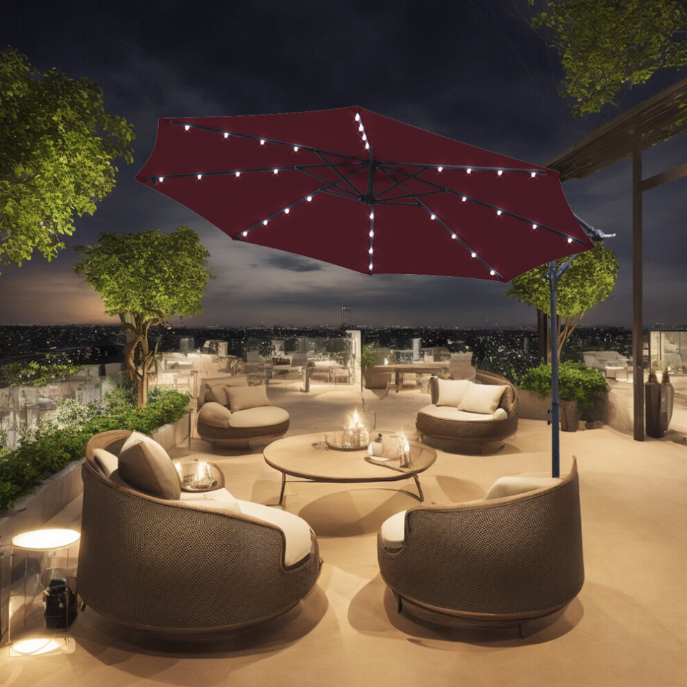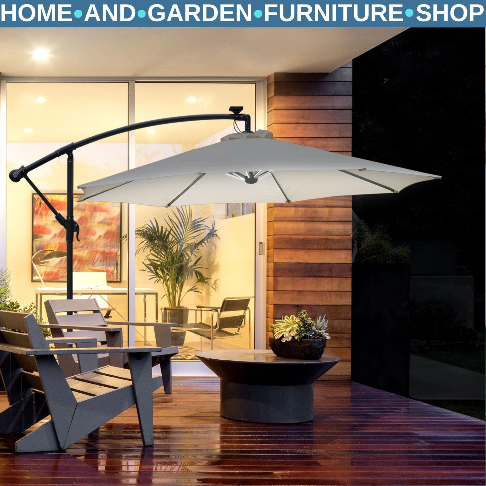 Banana Parasol 3m Garden Umbrella with LED Solar Lights & Crank Outdoor Hanging