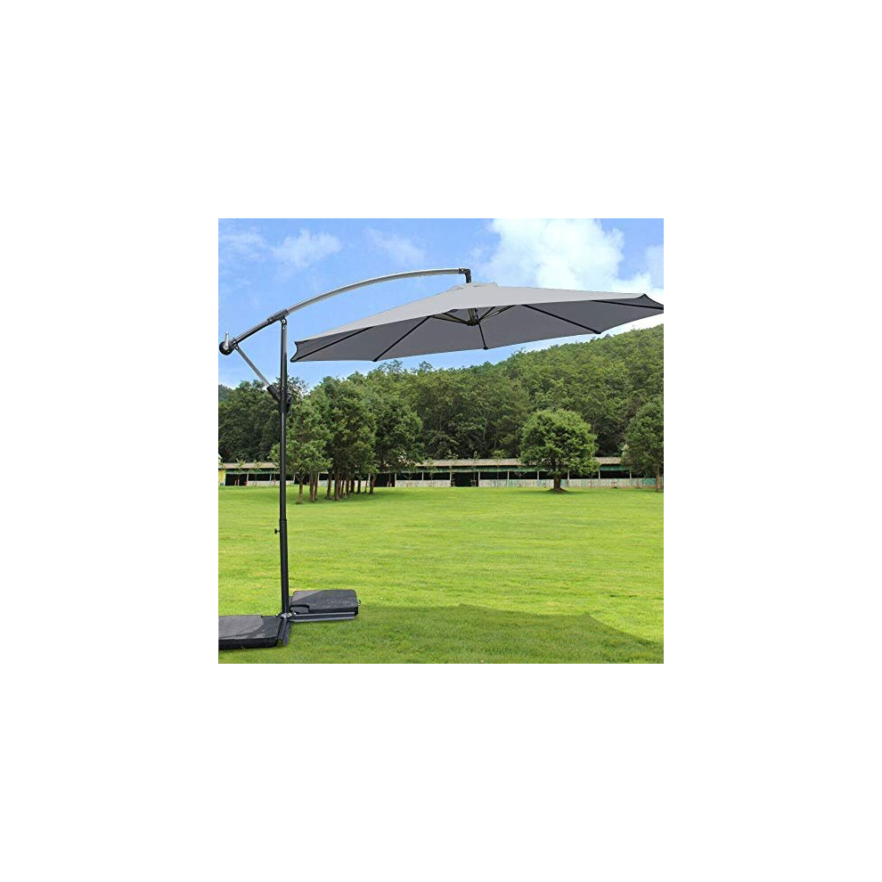 Neo 3M Garden Banana Outdoor Waterproof Freestanding Parasol LED Lights Hanging Cantilever Umbrella Sun Shade with Crank Handle Water Base (Grey)
