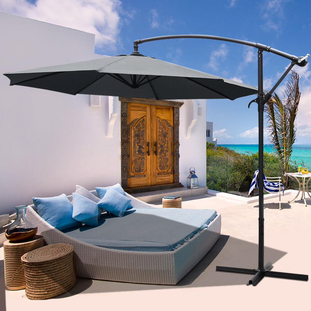 (Dark Grey, Cross Base) 3M Large Banana Cantilever Patio Garden Parasol Outdoor Umbrella