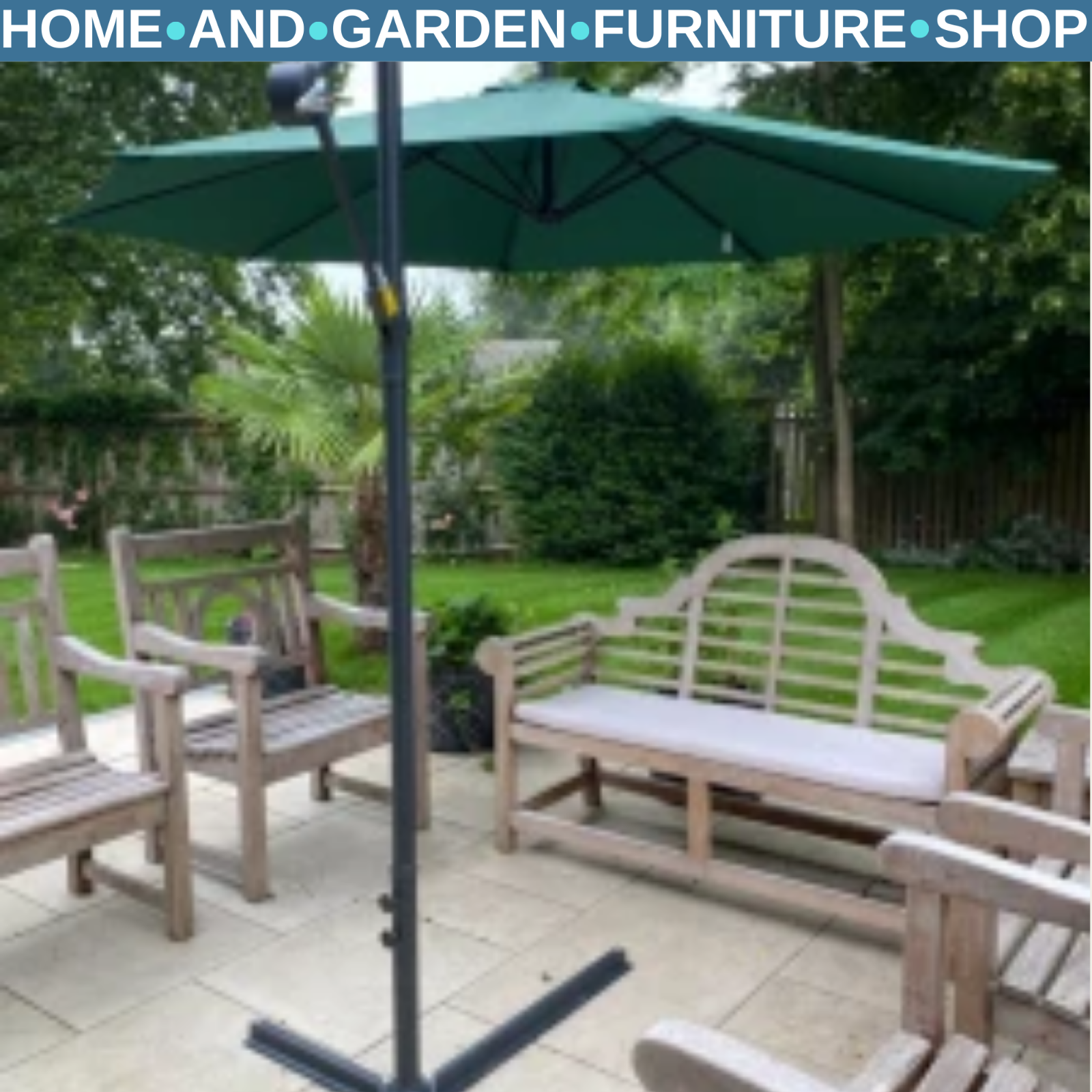 Harrier 3m Cantilever Parasol – Adjustable 3m Outdoor Patio Umbrella, Weather-Resistant Canopy | Optional LED Solar Lights & Bases [5 Colours] (Dark Green - LED Lights, Parasol Only)