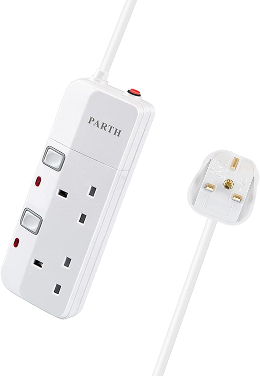 PARTH 3M Extension Lead Surge Protection 2 Gang Plugs Extension Socket with Indi