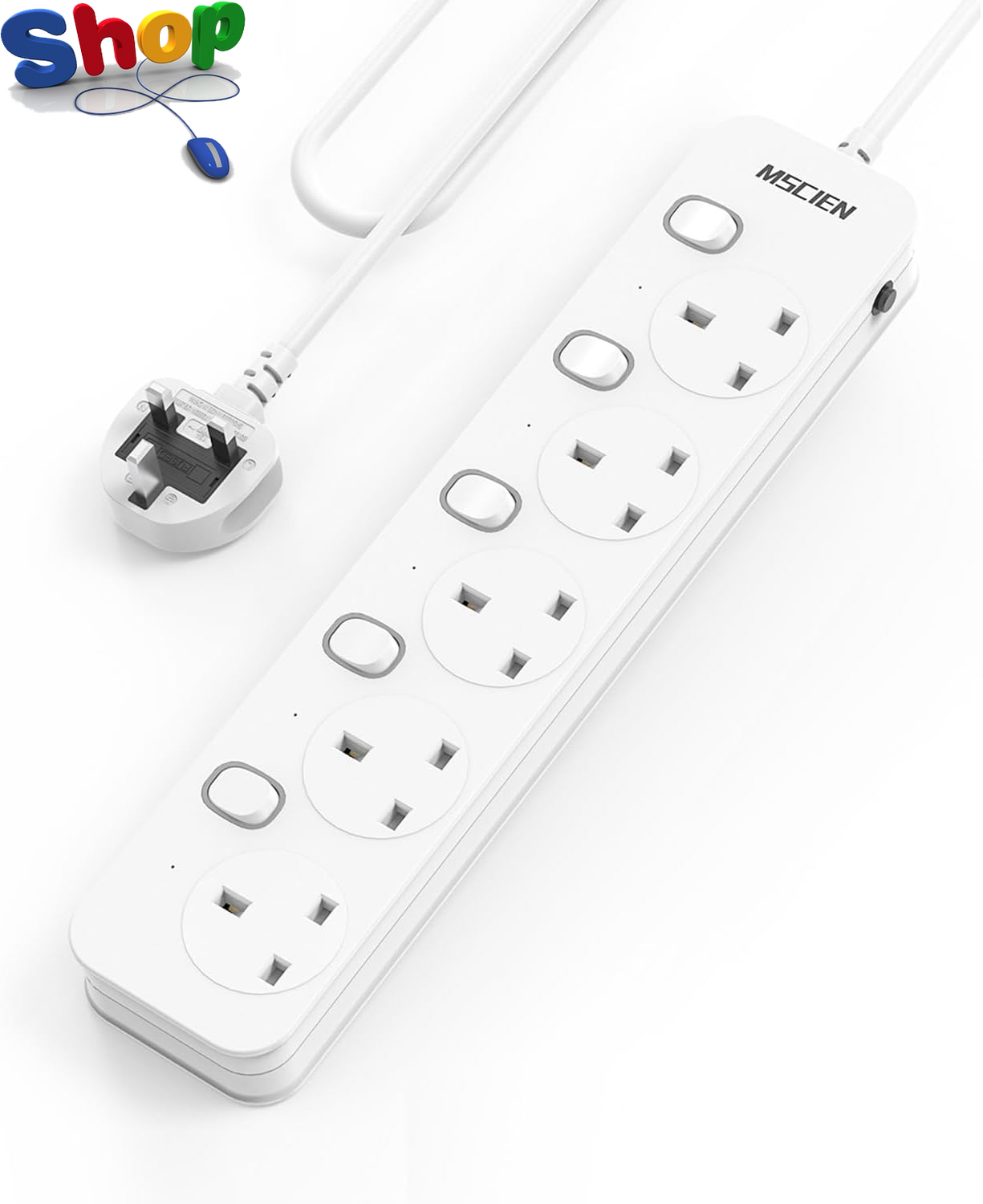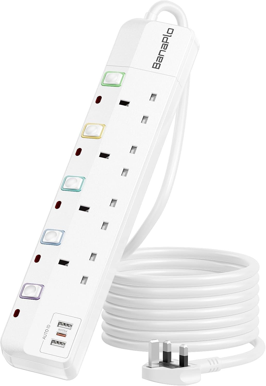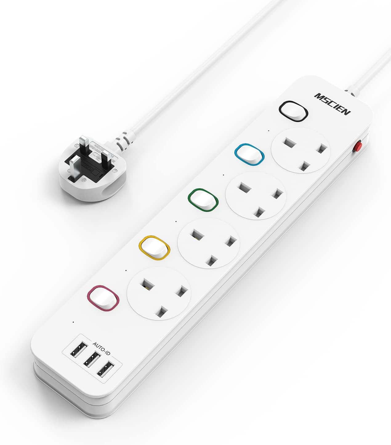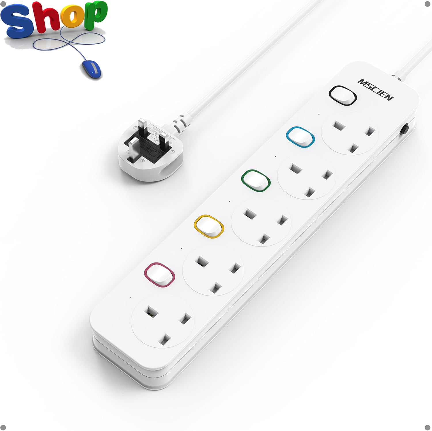 Mscien Extension Lead 3M 5 Way with Individual Switches 3M Extension Lead Wall