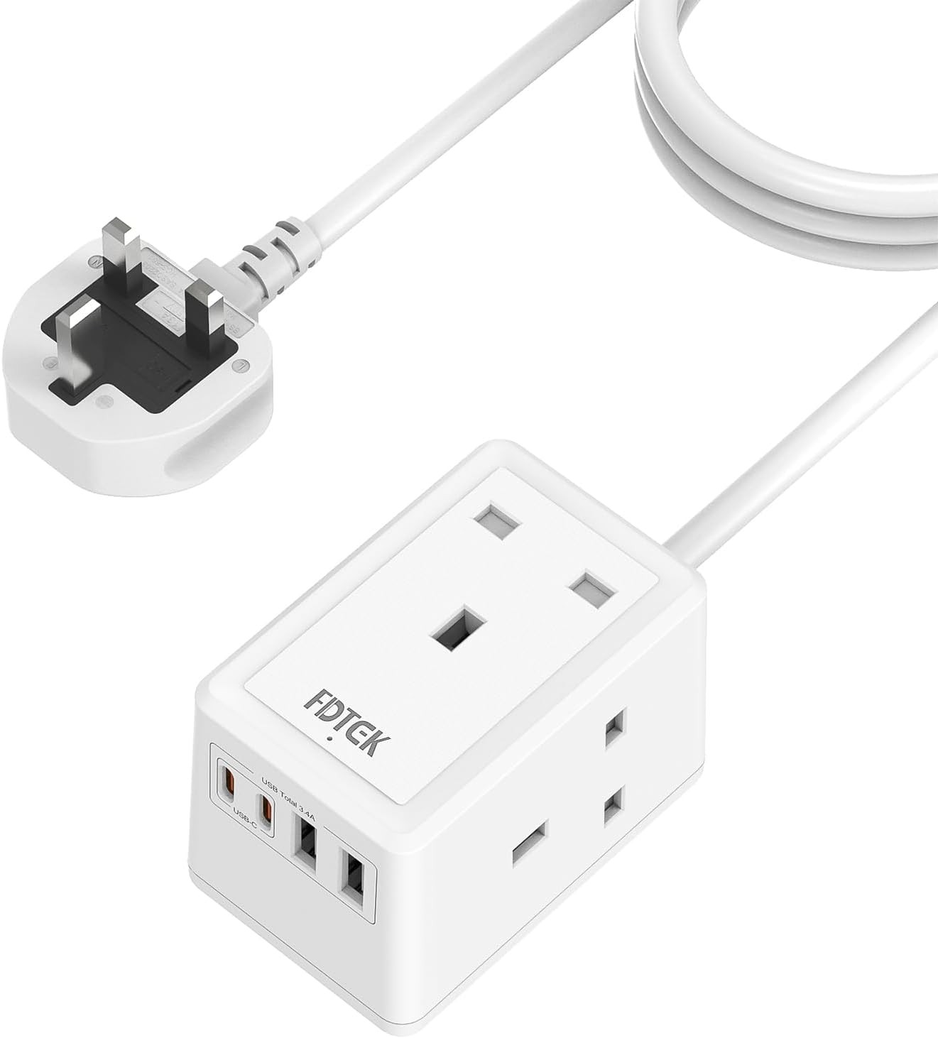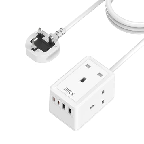 3M Extension Lead with USB Slots, FDTEK Mini Plug Extension Socket with 3 AC Out