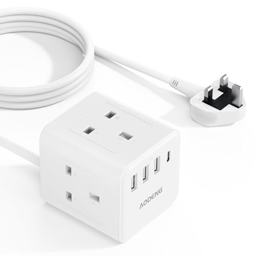 3M Extension Lead Cube with USB, BEVA 4 Gang Extension Socket with 3 USB Ports,