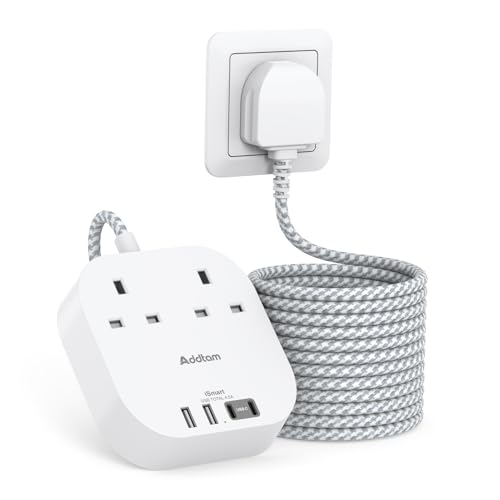 Mscien 3M Extension Lead with USB Slots 4 Way 3 USB Extension Socket with
