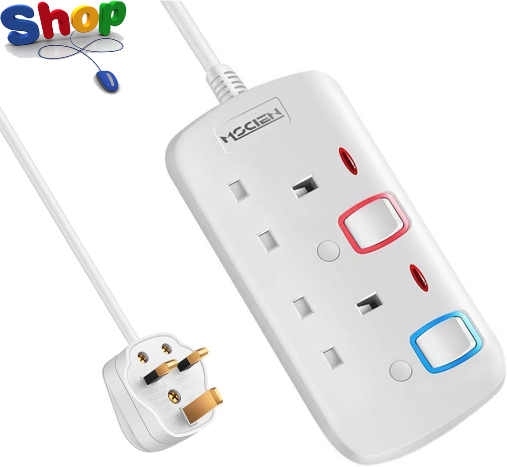 3M Extension Lead Surge Protection 2 Gang Plugs Extension Socket with Individual