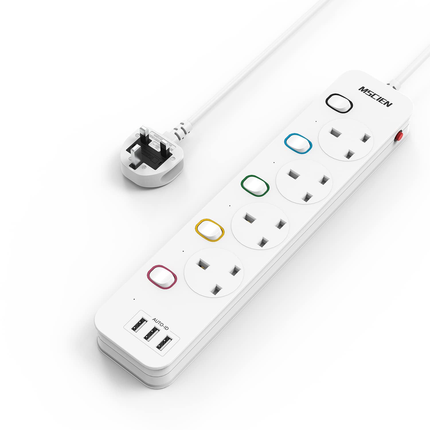 Mscien 3M Extension Lead with USB Slots, 4 Way 3 USB Extension Socket with Indi