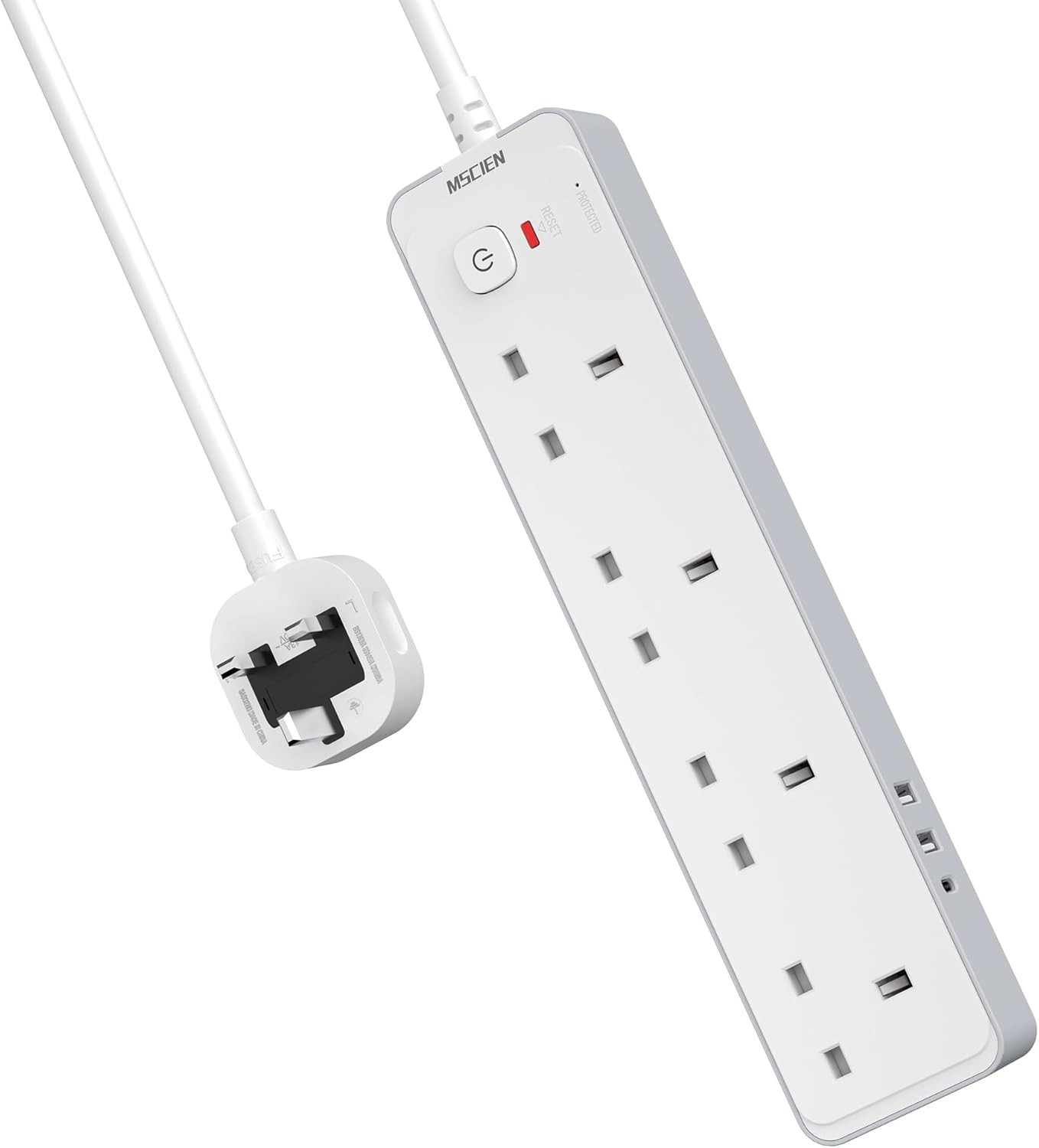 Mscien 3m Extension Lead With USB Slots (1 USB C), 4 Way Surge Protected Extens
