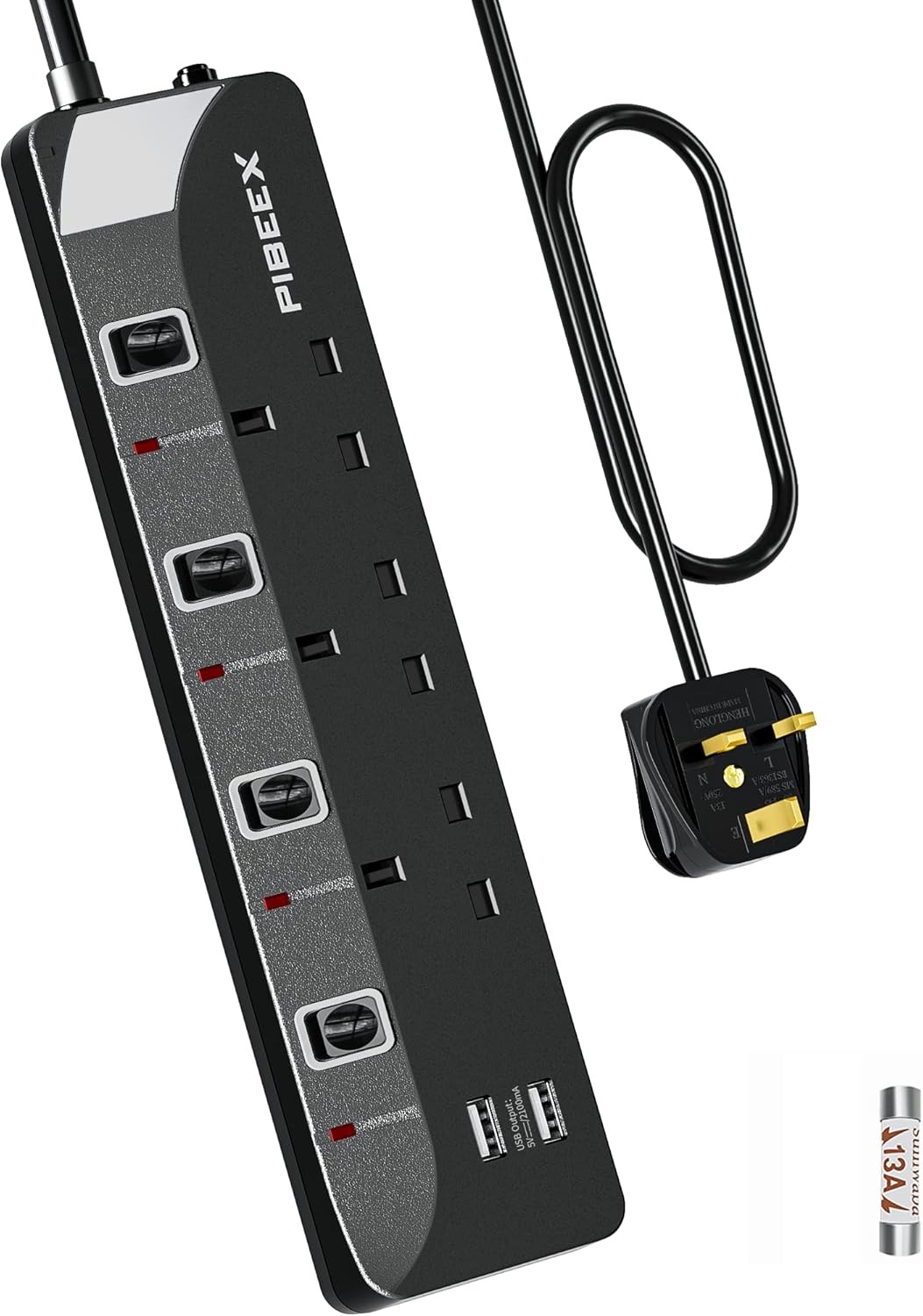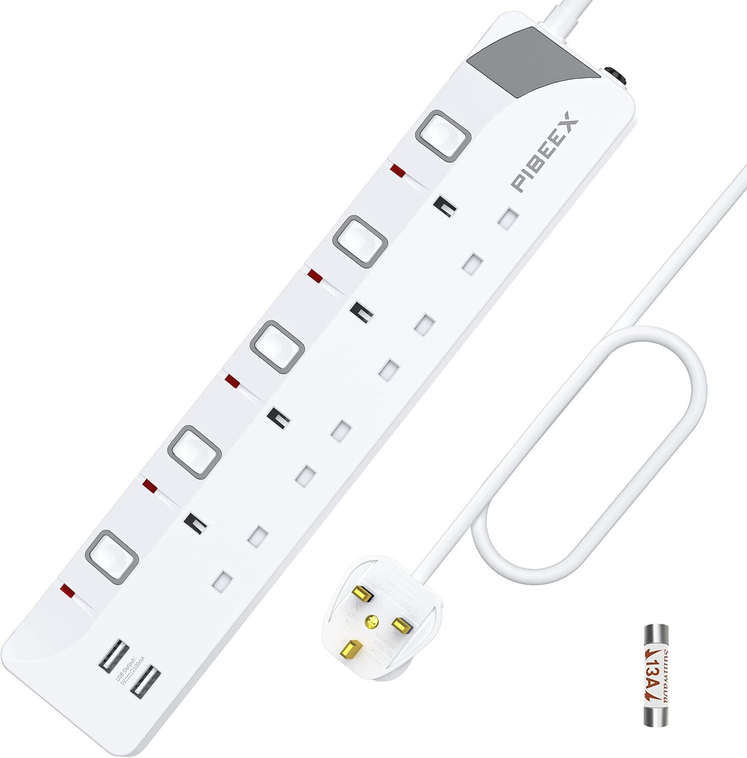 PIBEEX 3M Extension Lead with USB Slots, 4 Way 2 USB Extension Socket UK CutyQ