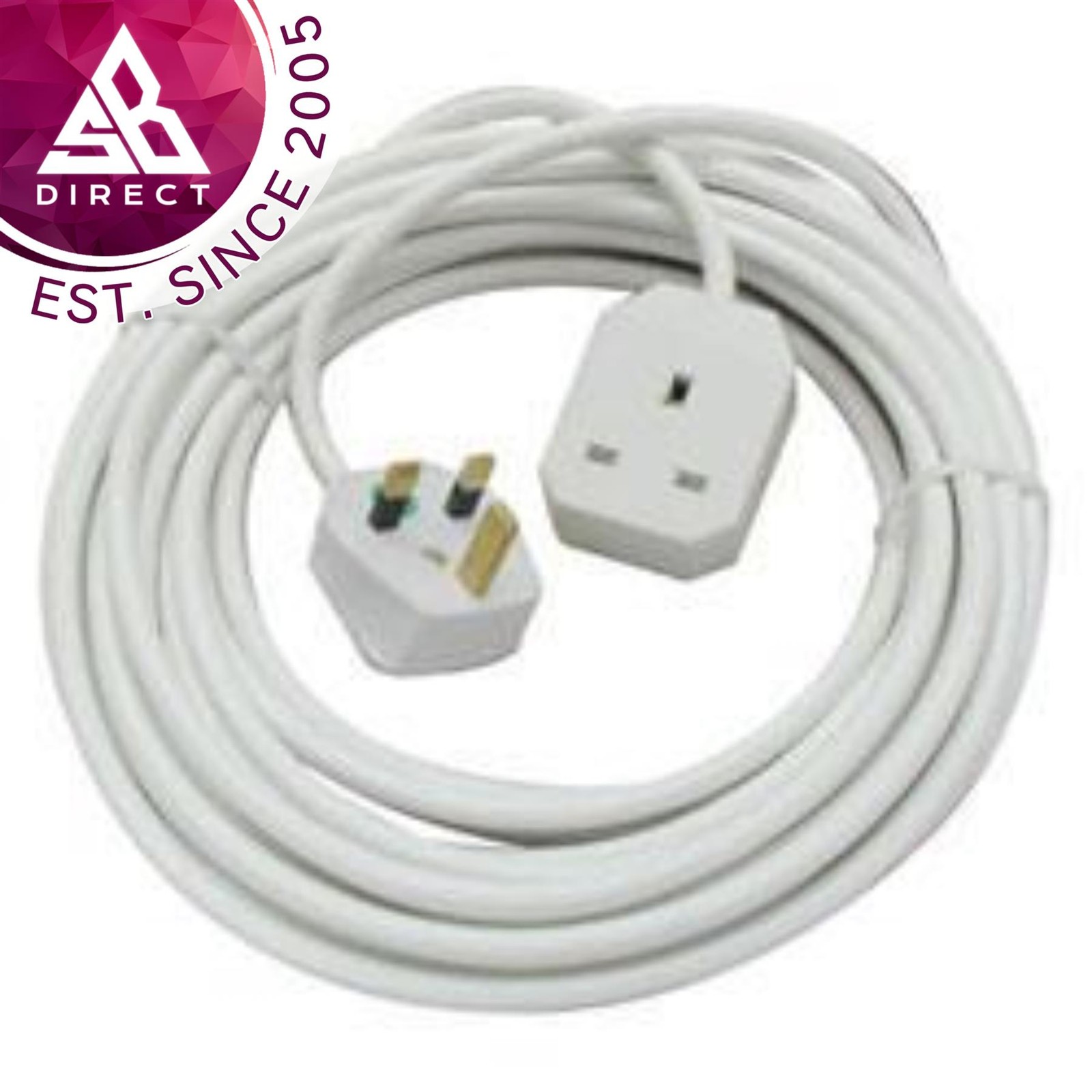 Omega 21603 Single Gang 1 Way 3m Mains Extension Lead UK Plug 13A Fused - White