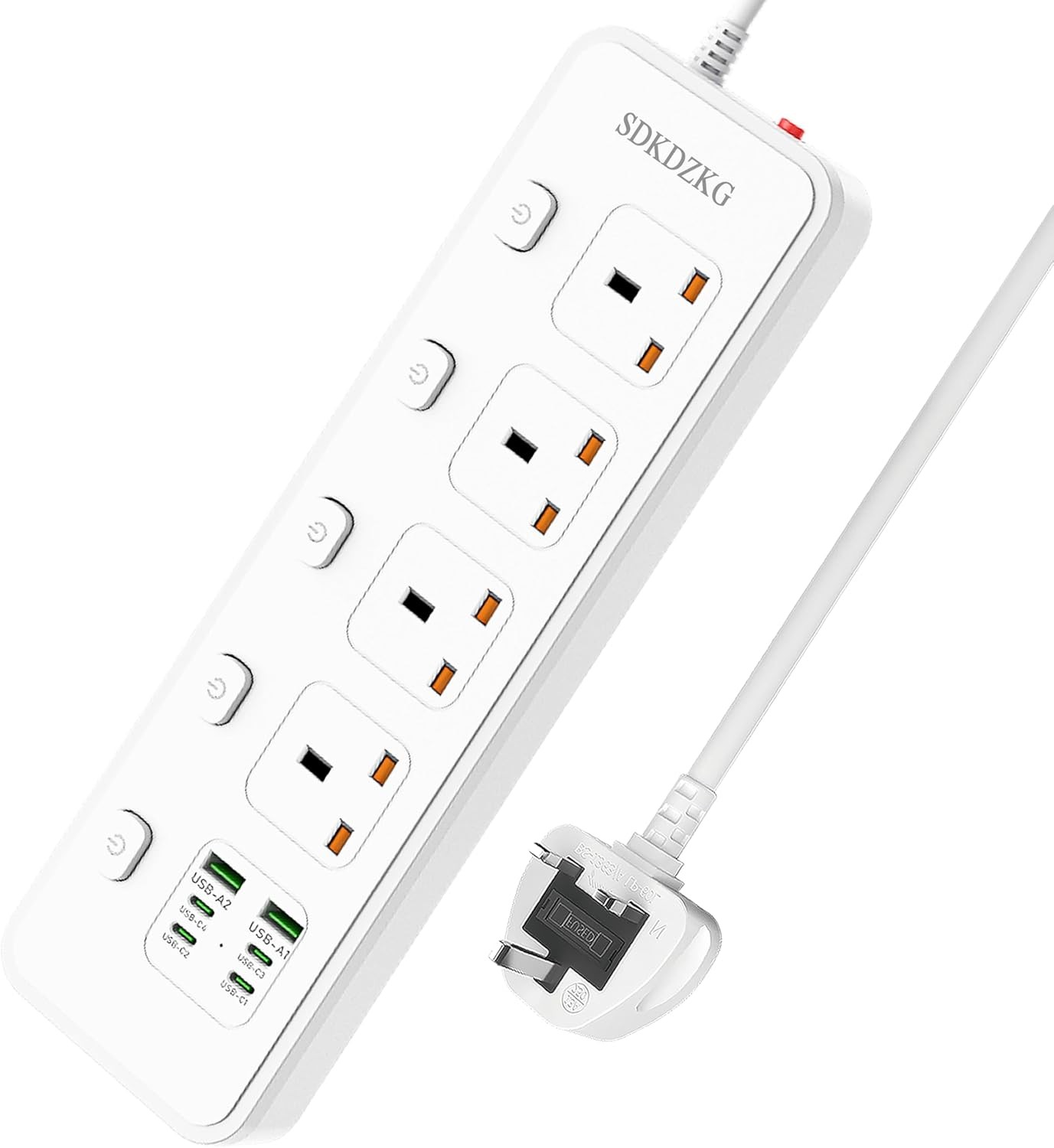 3M Extension Lead with 4 USB-C Ports and 2 USB-A Ports, 4 Way Sockets Outlets(1