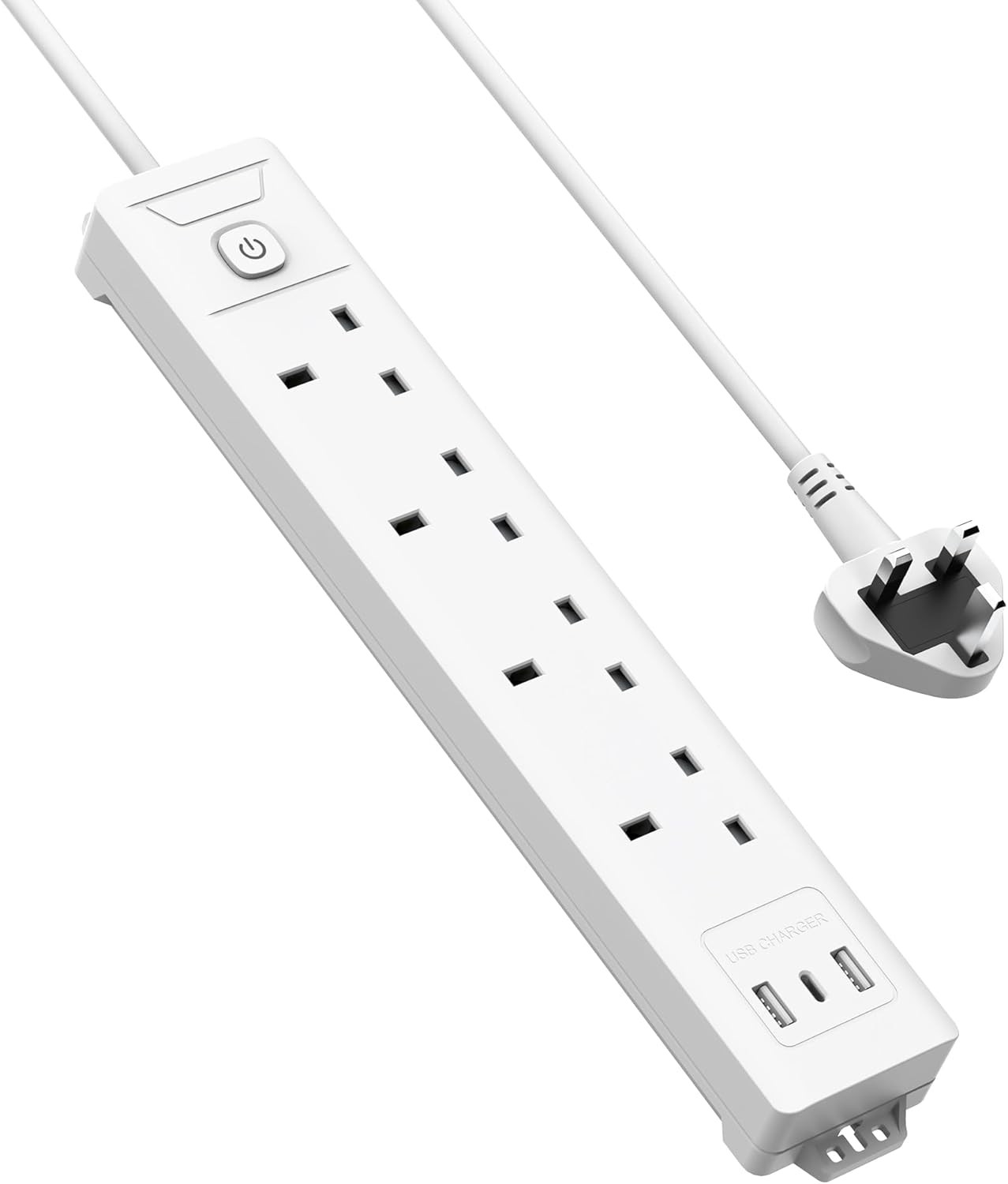 3M Extension Lead with USB Slots, 4 Way Extension Lead with USB C Port(Pd 20W) a