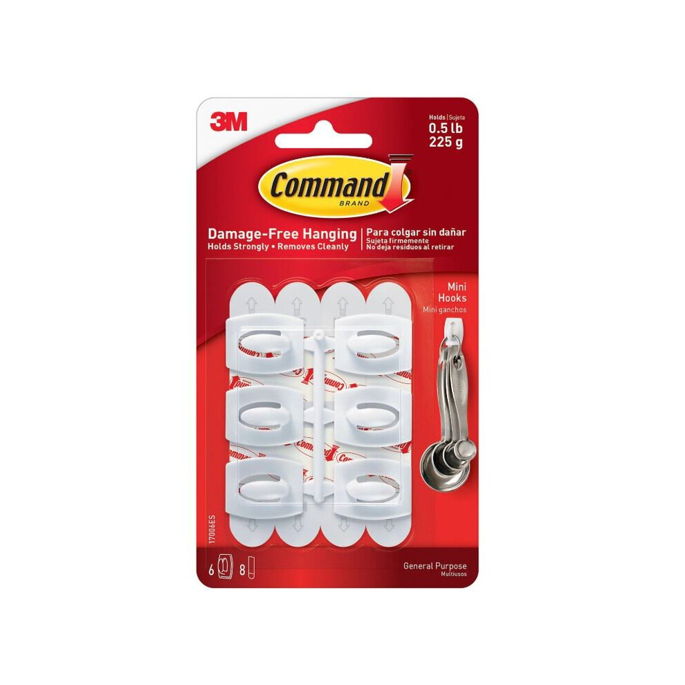 3M Command White Plastic Decoration Mini Adhesive Hanging Hooks Reusable Pack 6