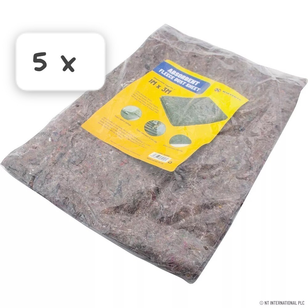 5 x ABSORBENT FLEECE DUST SHEET REUSABLE DIY ANTI SLIP PROTECTION 1M X 3M