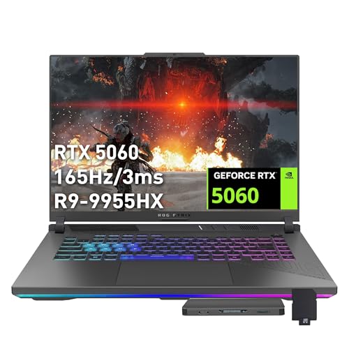 ASUS ROG Strix G16 16" WUXGA 165Hz Gaming Laptop, AMD Ryzen 9 9955HX, GeForce RTX 5060, 64GB DDR5, 3TB Storsge(2TB SSD+1TB Docking Station Set), 4-Zone RGB Backlit Keyboard, Wi-Fi 6E, Win 11, Gray