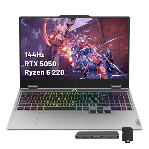 Lenovo LOQ 15.6" FHD 144Hz Gaming Laptop, AMD Ryzen 5 220, GeForce RTX 5050 8GB GDDR7, 64GB DDR5, 3TB Storage (2TB SSD +1TB Docking Station), Backlit Keyboard, HD 720p Camera, Win11, Gray