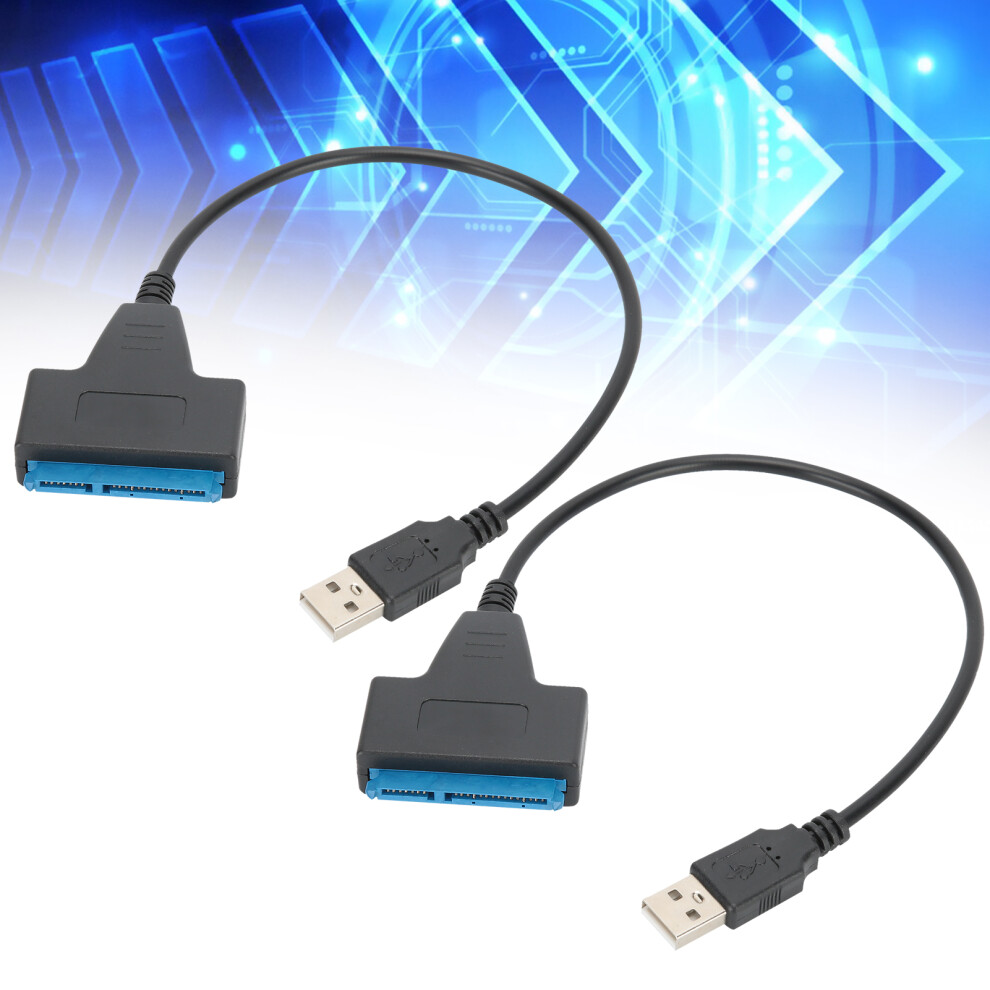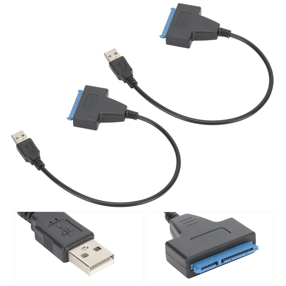 2Pcs USB 2.0 to SATA Cable 20cm Black for SSD/HDD up to 3TB