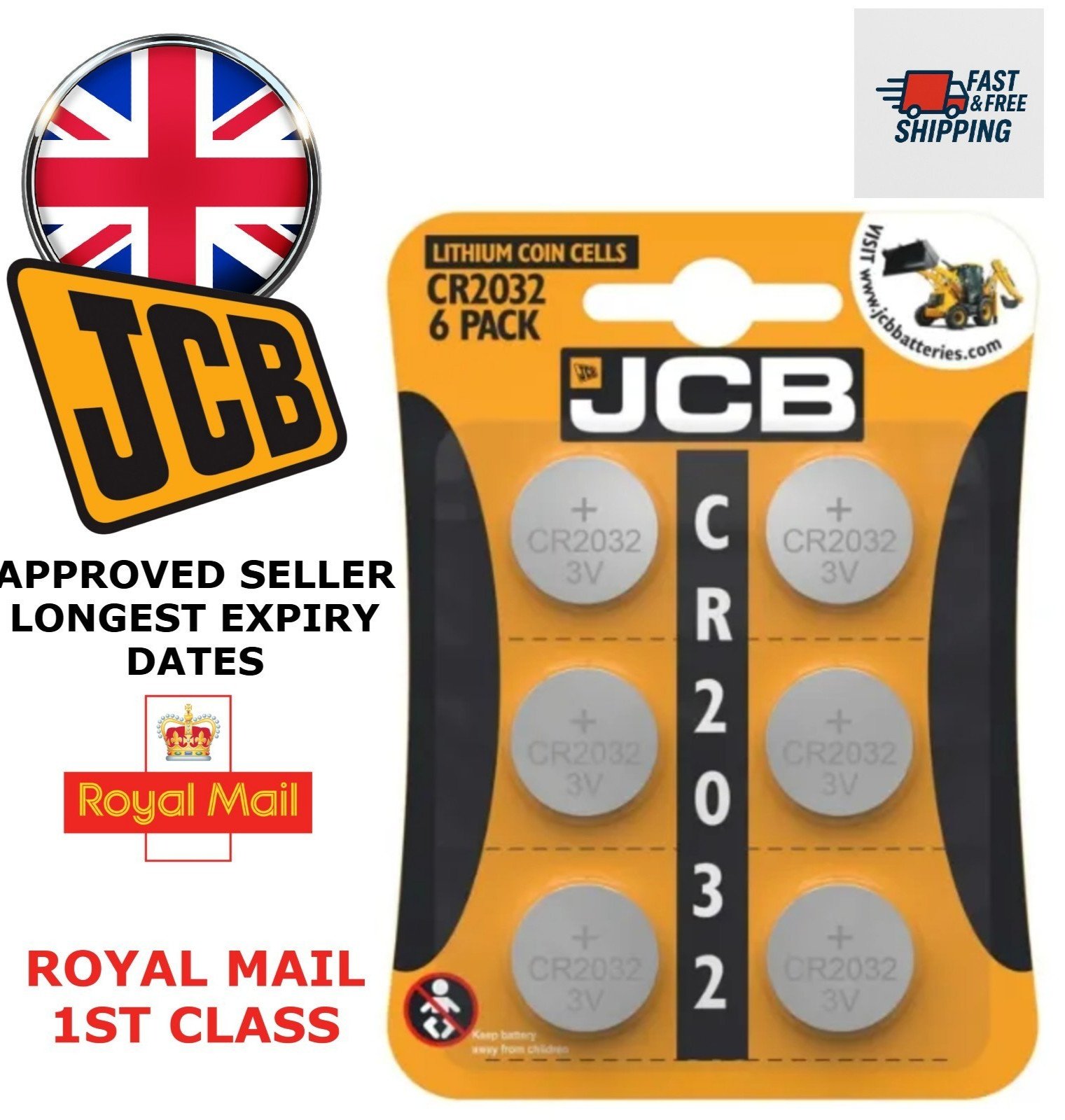 1.25, CR2032, Lithium, Button cell batteries