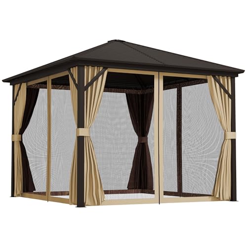 Outsunny 3x3(m) Hardtop Gazebo with Polycarbonate Roof, Netting and Curtains