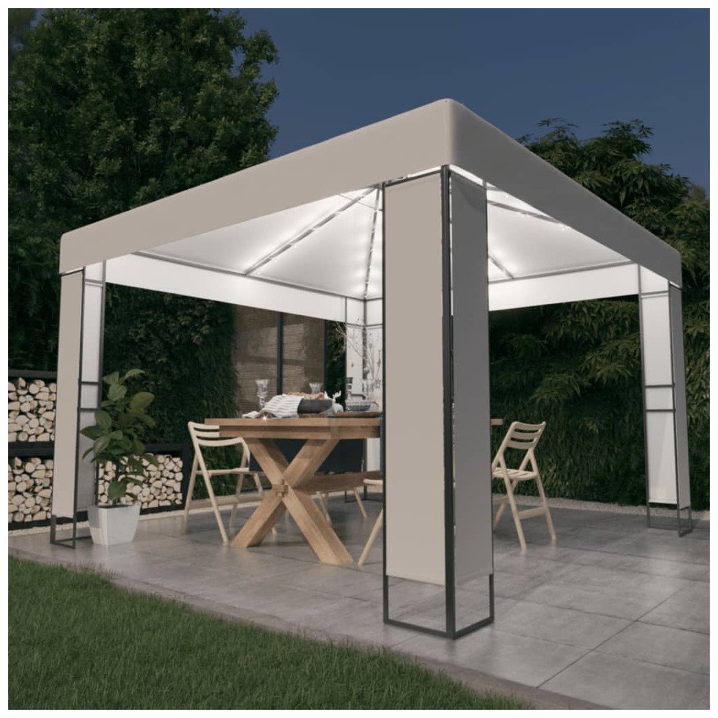 vidaXL Gazebo with Curtains and LED Lights 3x3m
